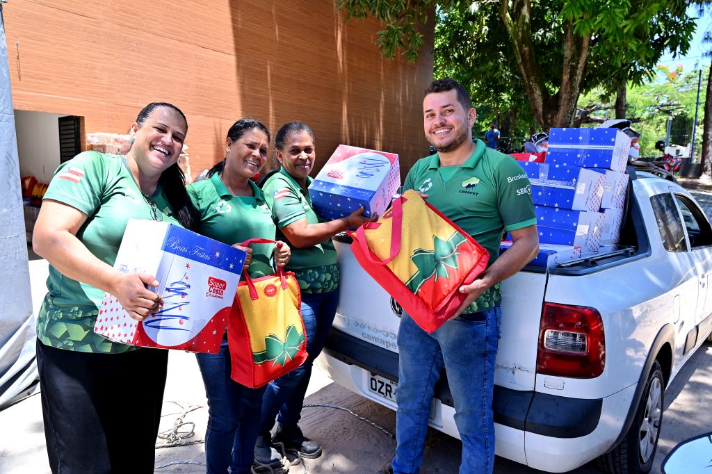 As cestas, compostas por 15 itens alimentícios, foram distribuídas a integrantes das cooperativas CAEC (Canabrava), CAMAPET, CRUN (União Nazaré), CANORE (Nova República) e Cooperbari (Ogunjá/Bariri). A presidente da CAMAPET, Ellen Nildes Duarte, afirmou que toda doação é benvinda para os trabalhadores. “Só quem está nas cooperativas sabe o quanto isso faz diferença. Ter a oportunidade de uma ceia de Natal para a família é algo muito significativo. Somos muito gratos a todos que se mobilizaram para tornar esse momento possível”, declarou.