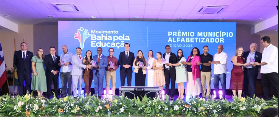 Subiram ao palco prefeitos, secretários municipais de Educação e representantes das redes de ensino das cidades premiadas. Na categoria Ouro, foram reconhecidos os municípios de Quixabeira, Novo Horizonte e Malhada de Pedras, por alcançarem 70% ou mais de crianças alfabetizadas na idade certa, correspondente ao nível 4 do Indicador da Criança Alfabetizada.