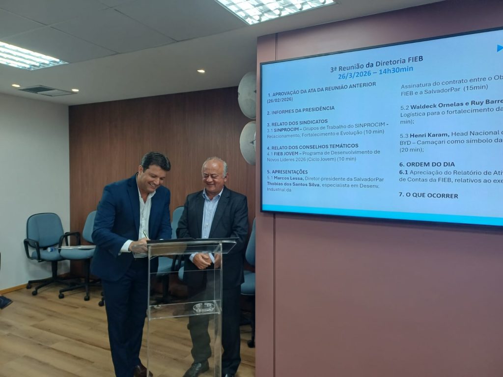 A assinatura de um contrato entre o Observatório da Indústria da Bahia, vinculado à Federação das Indústrias do Estado da Bahia (FIEB), e a SalvadorPar marca um novo passo na estruturação de políticas públicas baseadas em dados e evidências para o desenvolvimento econômico de Salvador. A parceria foi formalizada nesta quinta-feira (26) e prevê a criação de indicadores, estudos de viabilidade e ferramentas estratégicas para apoiar a tomada de decisão na capital baiana.
